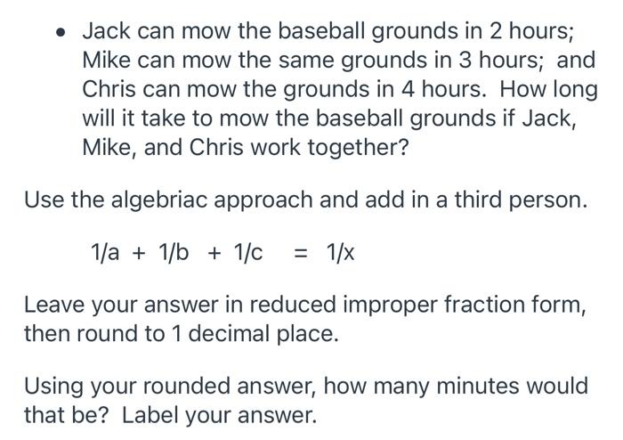 Solved Jack Can Mow The Baseball Grounds In 2 Hours Mike Chegg Com